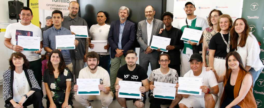 Le 5 juin dernier, le Délégué Général de la Fondation Air Liquide a eu le plaisir de remettre en main propre leur certification en soudage, après une formation pratique et théorique dispensée par la Fondación Tomillo, à 10 des 15 étudiants de la promotion 2025. Cette cérémonie concrétise l’impact positif de ce projet d’insertion professionnelle soutenu par la Fondation Air Liquide et un avenir professionnel pour ces bénéficiaires.